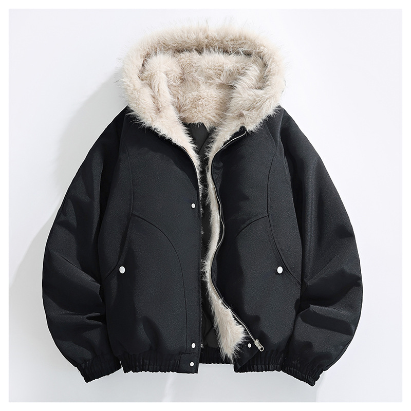 冬季美式复古加绒毛领外套男宽松连帽派克棉服情侣同款休闲棉袄