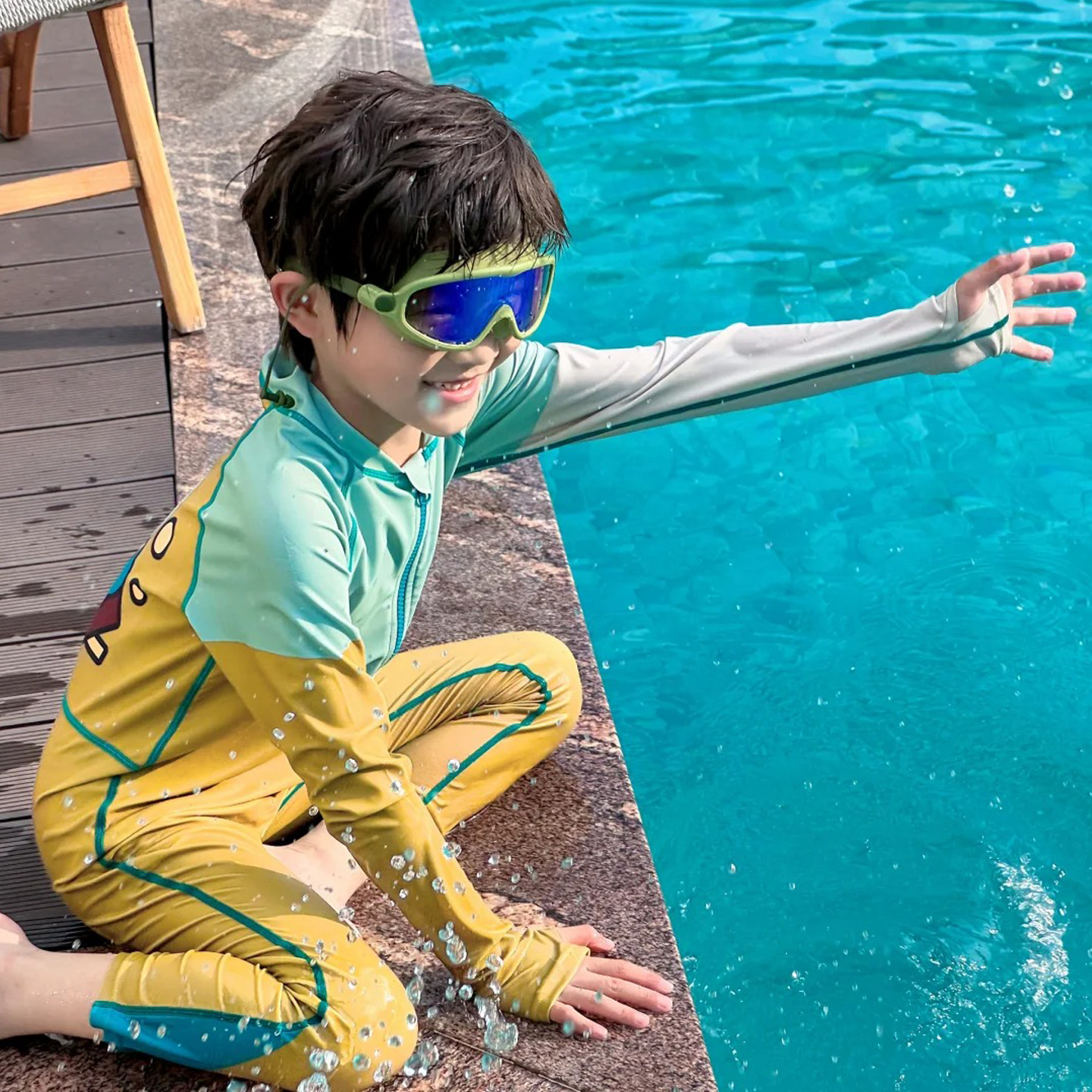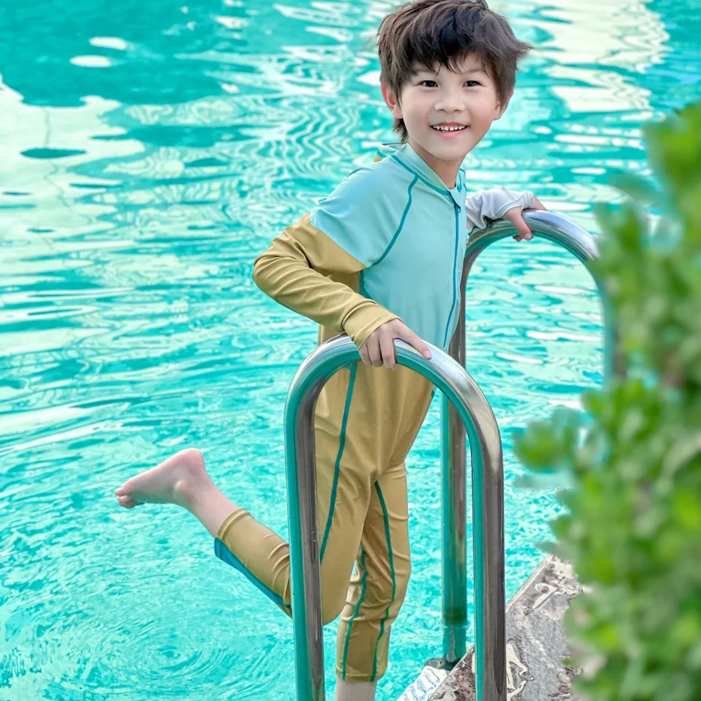 儿童连体泳衣2025男童长袖长裤防晒中大童女孩游泳宝宝泡温泉装备