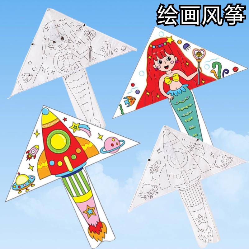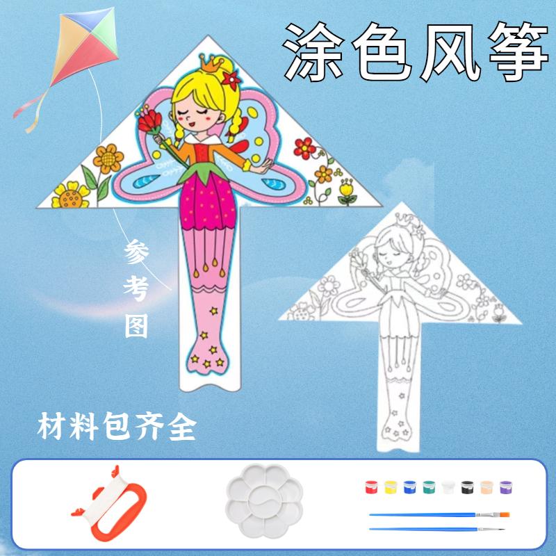 儿童手工绘画风筝幼儿园教学材料包自制材料包卡通diy填色涂鸦