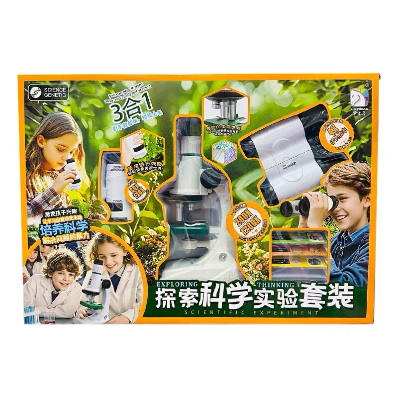 学优马3合1探索科学显微镜微观实验高清望远镜中小学生物儿童玩具