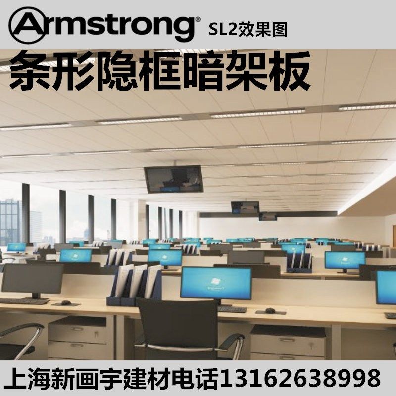 阿姆斯壮0*0矿棉板吊顶 隐框条形暗架 S烤漆龙骨吸音