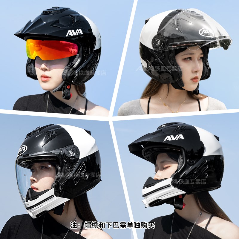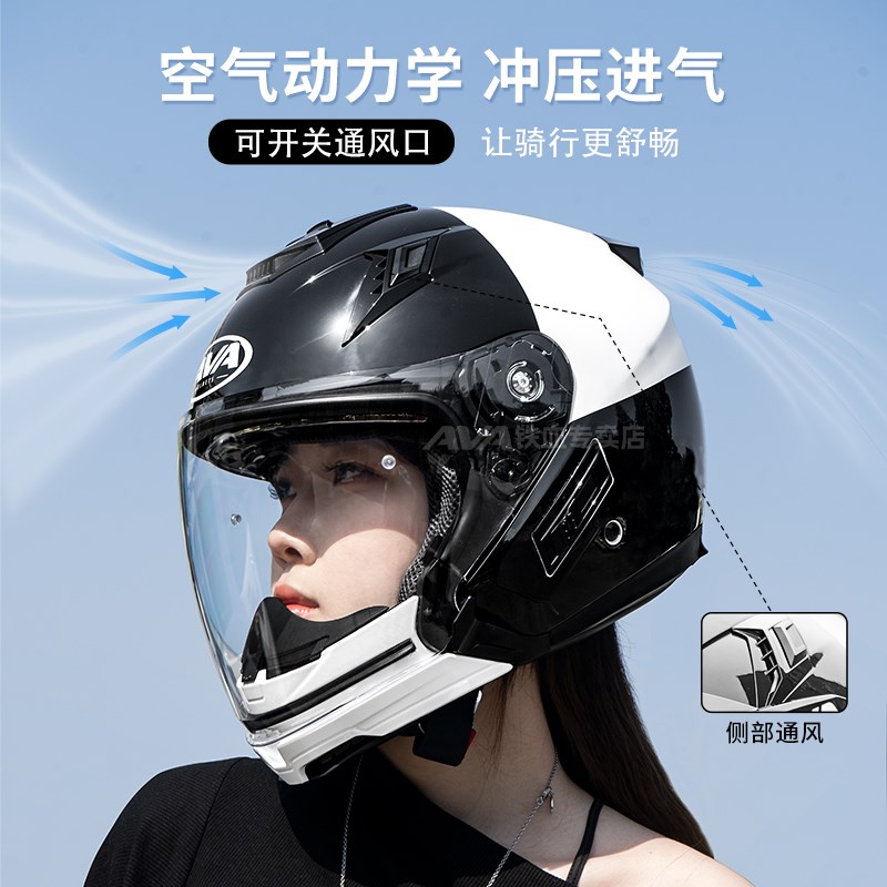 AVA摩托车头盔男夏季机车半盔女双镜片3/4拉力盔四季3C认证JET