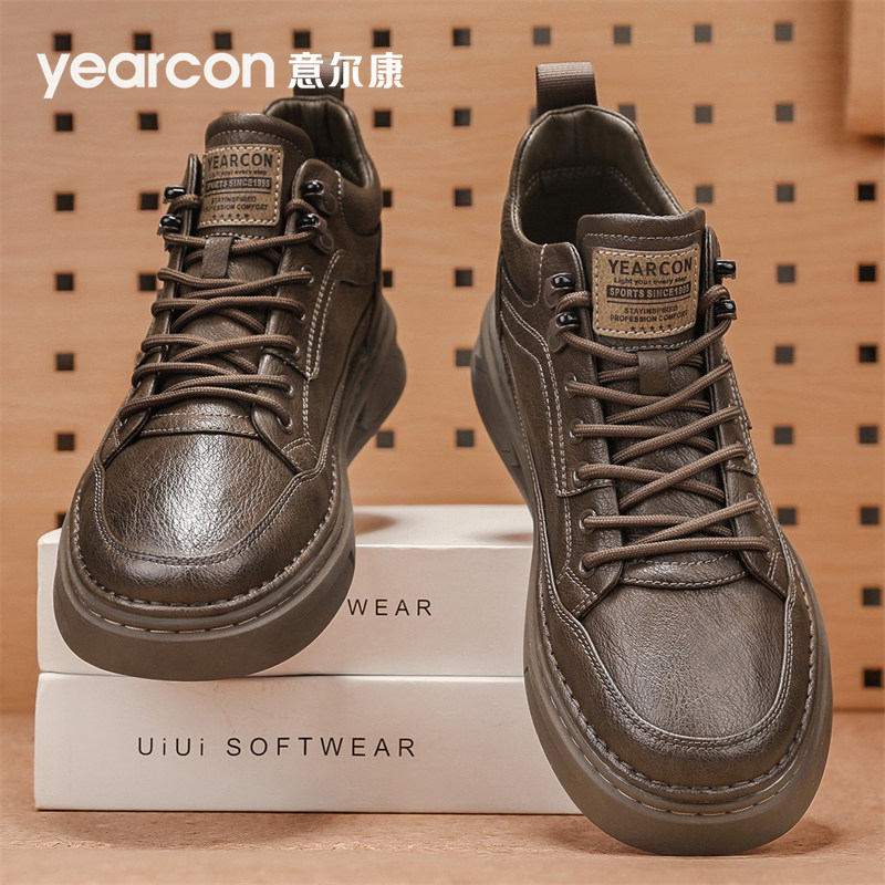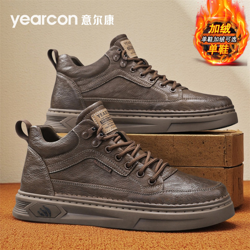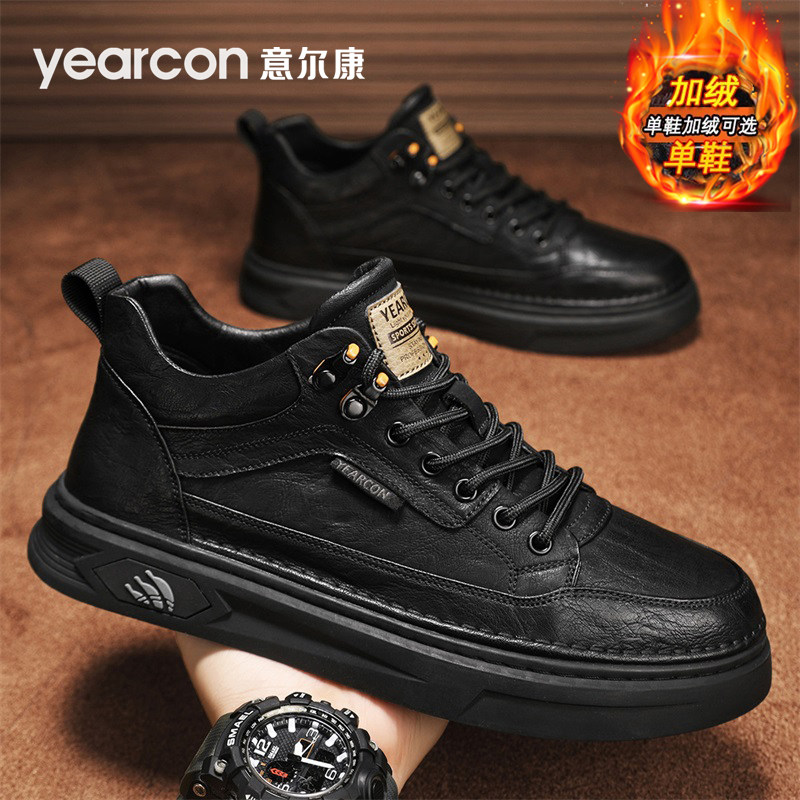 意尔康板鞋男鞋秋冬季新款加绒棉鞋男士增高帮马丁靴爆款休闲皮鞋