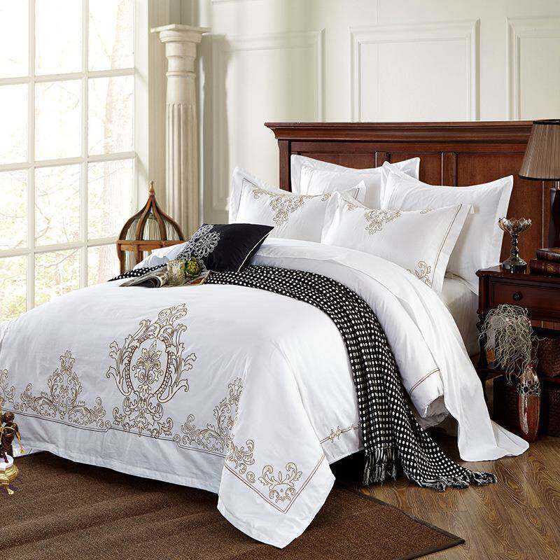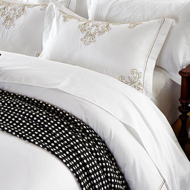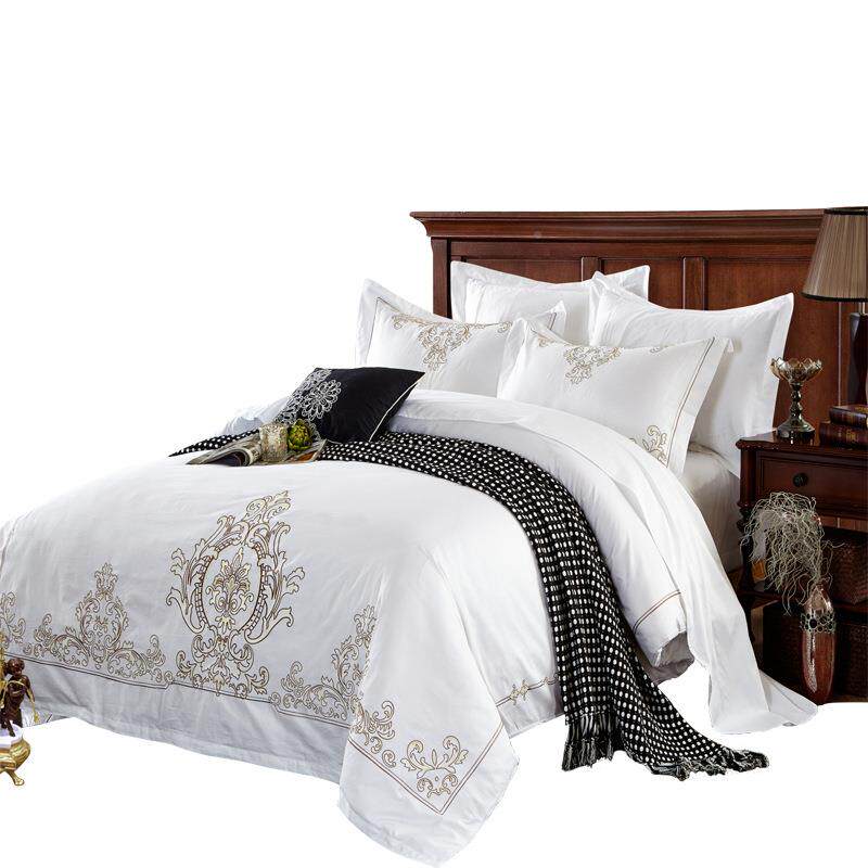 酒布草店贡宾馆床上用品纯棉1支.8m床全棉60缎绣花单04件双人单被