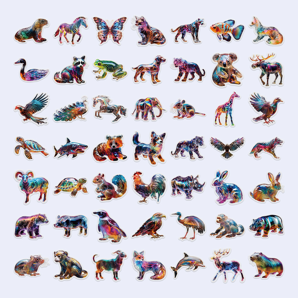 100张透明玻璃动物贴纸趣味ins风儿童装饰手账桌面手机壳笔记本