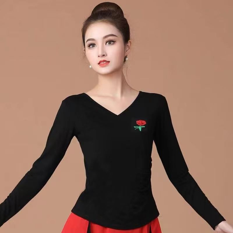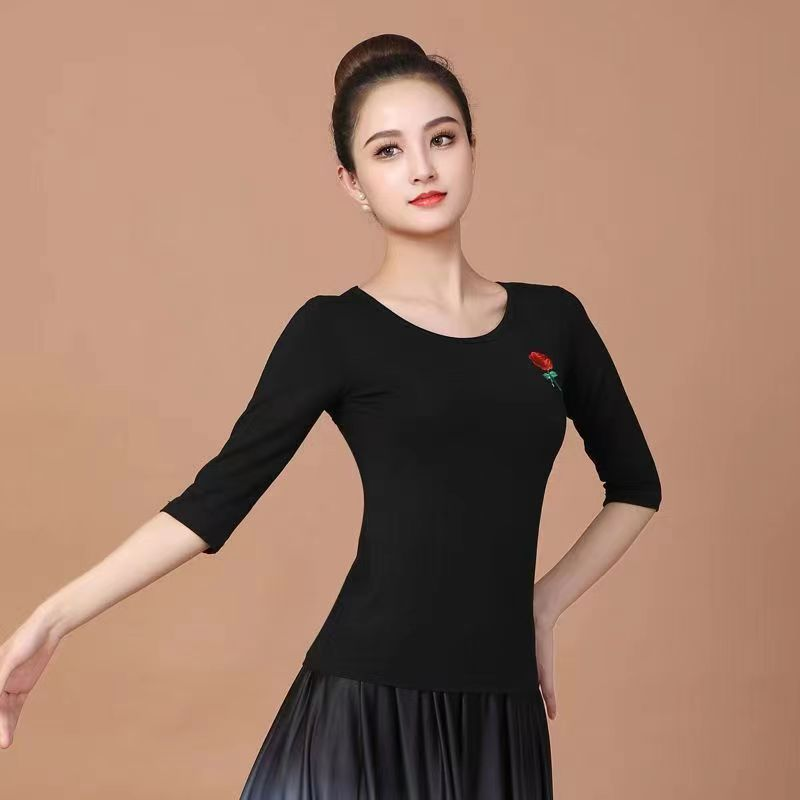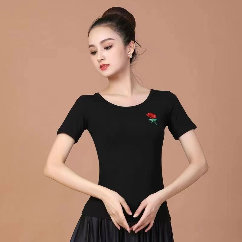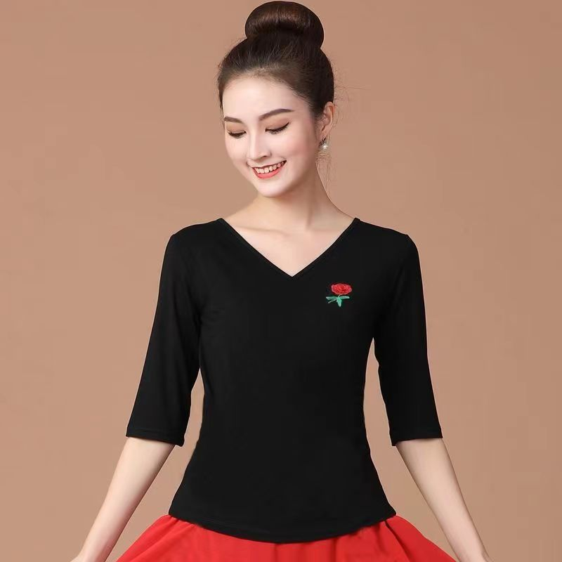 广场舞服装上衣莫代尔棉跳舞服装绣花款演出服
