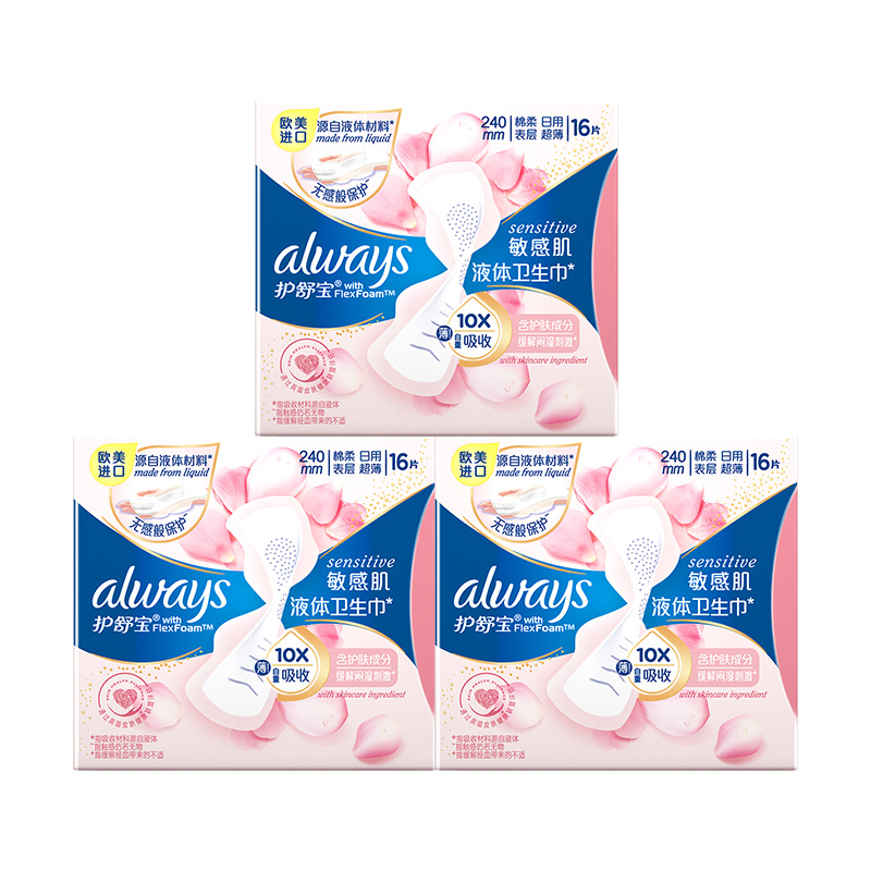 护舒宝液体卫生巾敏感肌日用240mm16片透气姨妈巾棉柔超薄正品