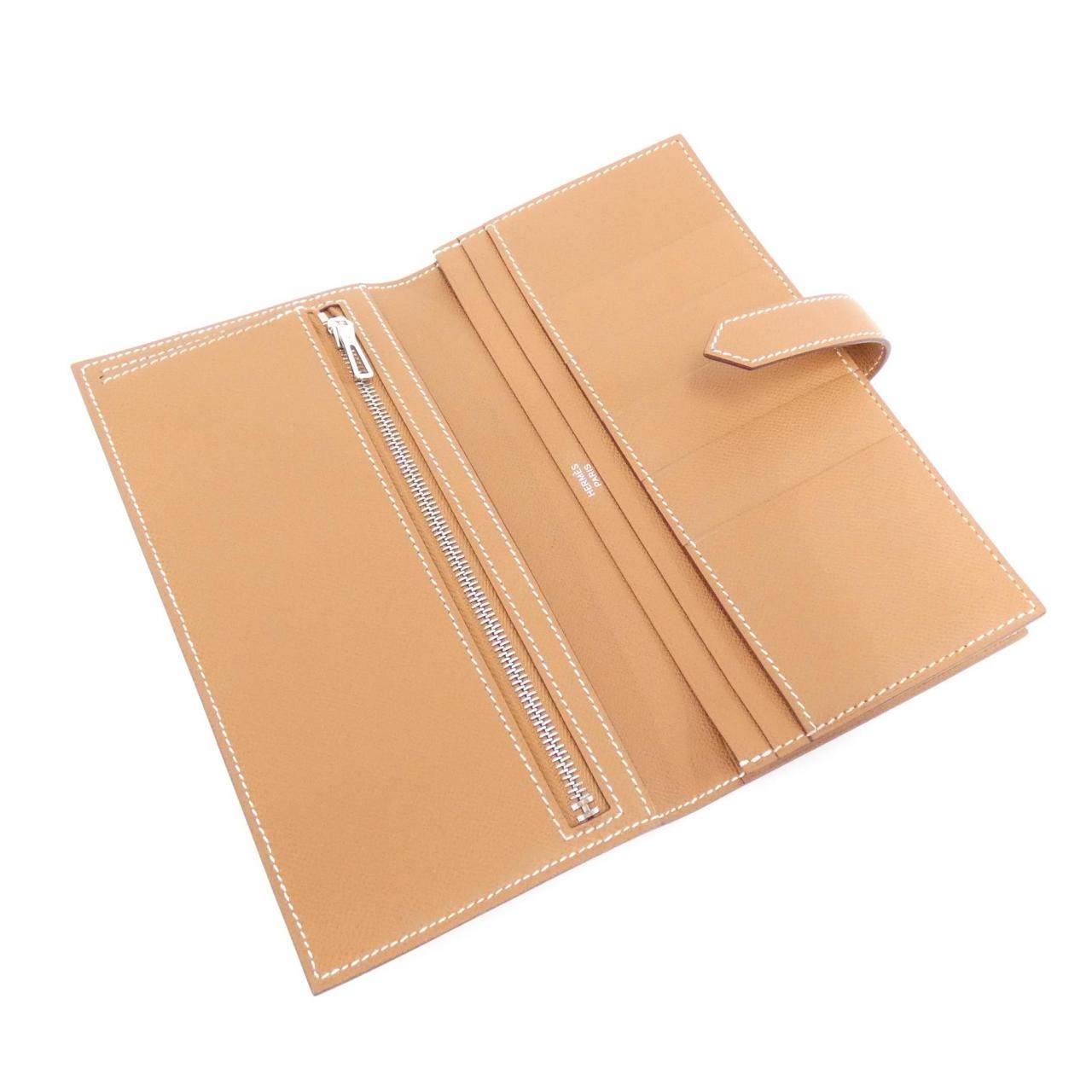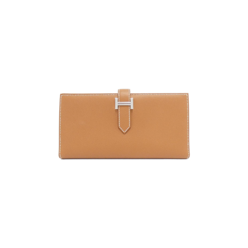 中古Hermes爱马仕A级95新Bearn Souffle钱包长款钱包Madame/金棕