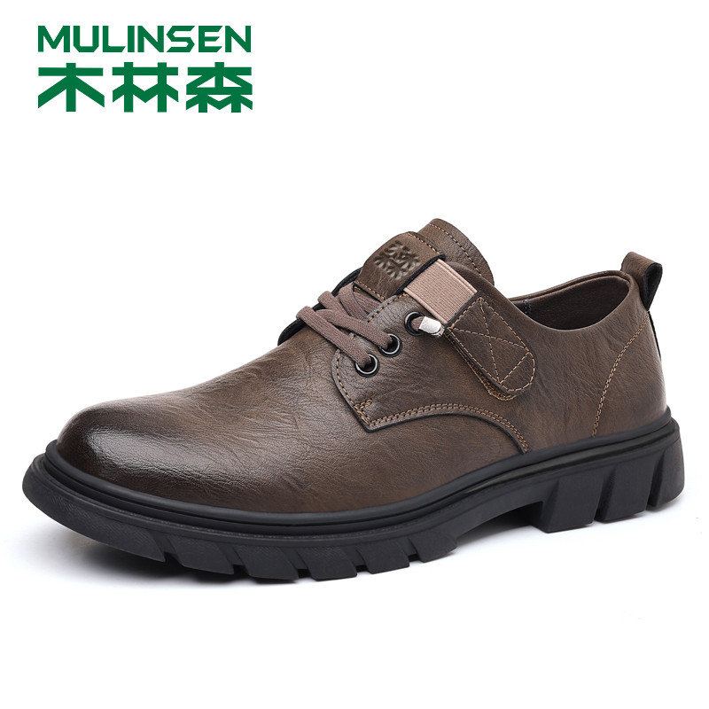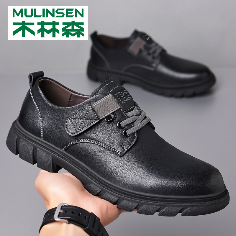 木林森男鞋2025秋冬季真皮大头休闲商务正装皮鞋低帮工装马丁短靴