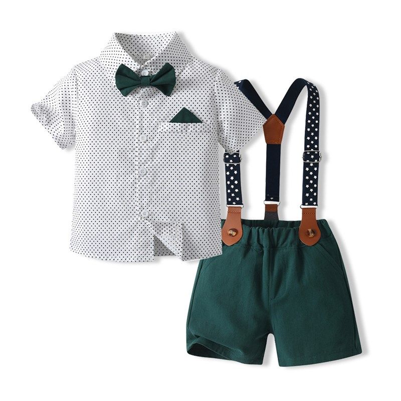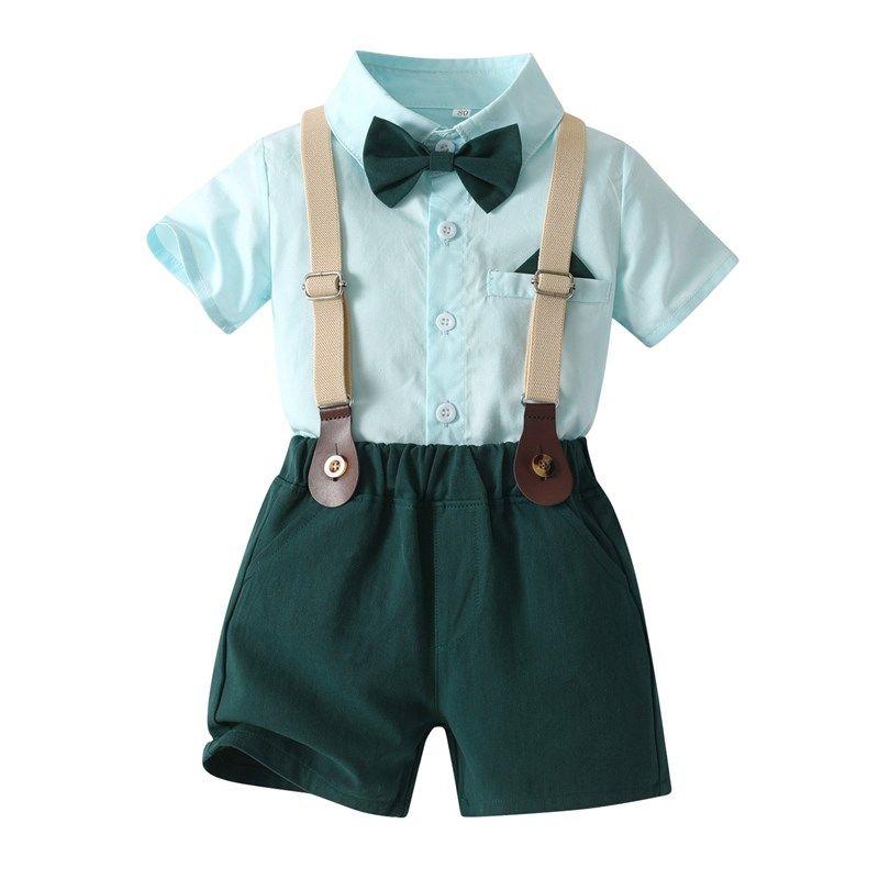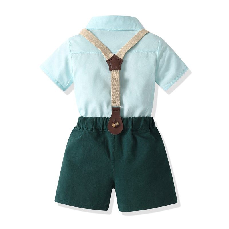 韩版童装男童夏装套装新款儿童装宝宝夏季短袖衬衫背带裤周岁礼服