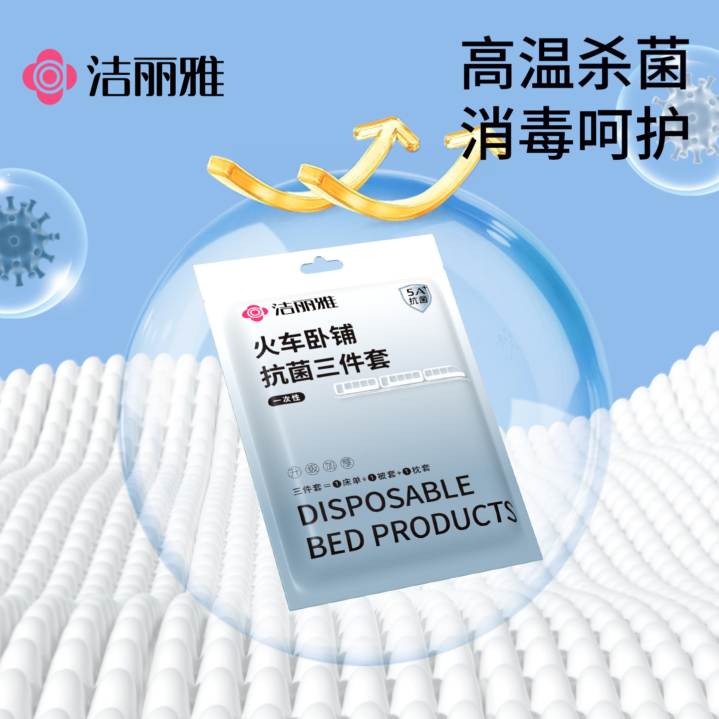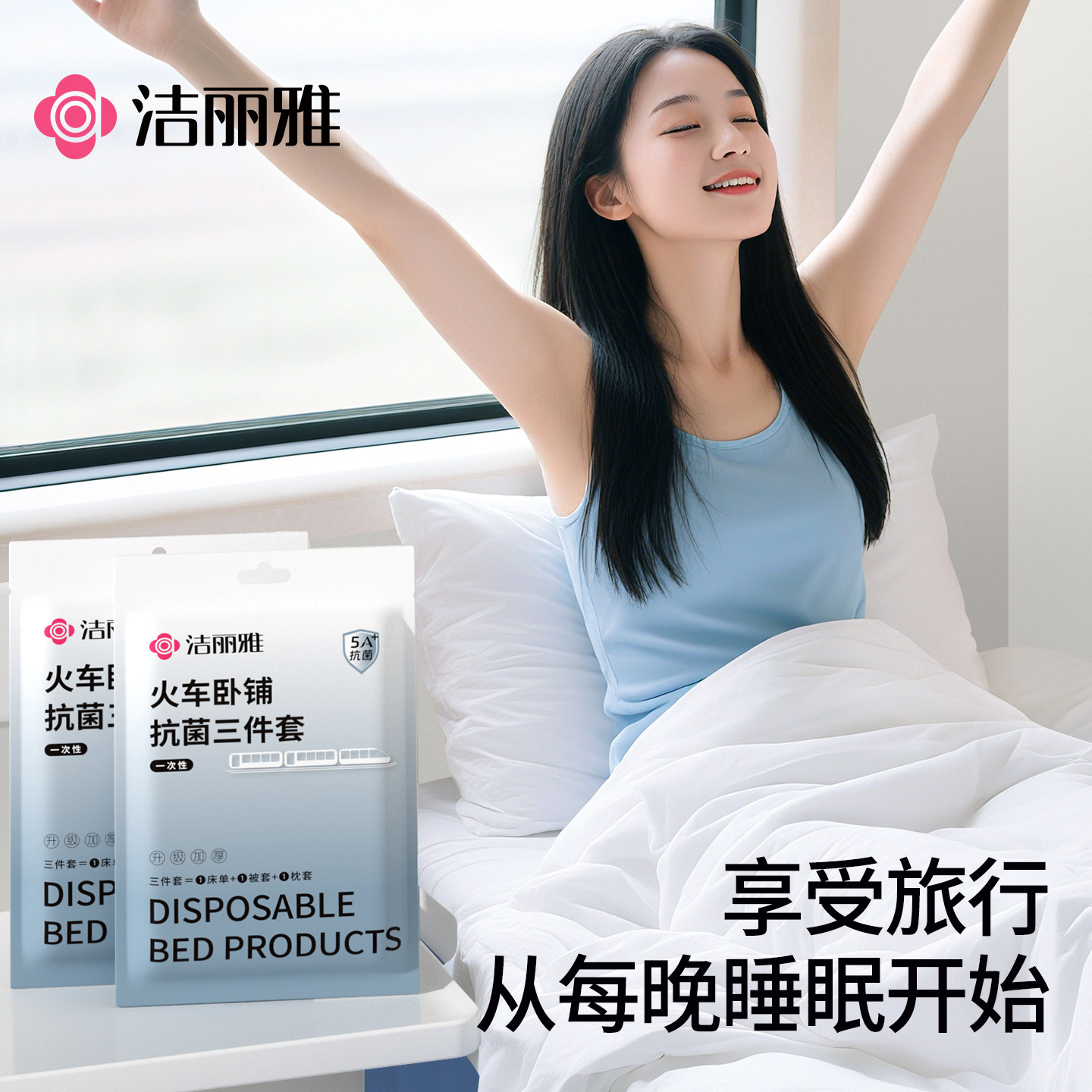 洁丽雅火车卧铺一次性三件套床单被罩枕套软硬卧床上四件套抗菌款