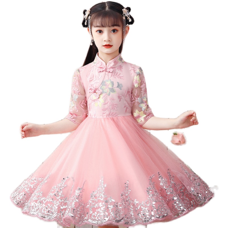 儿童旗袍中国风公主裙礼服洋气秋季新款女童古装唐装连衣裙小女孩