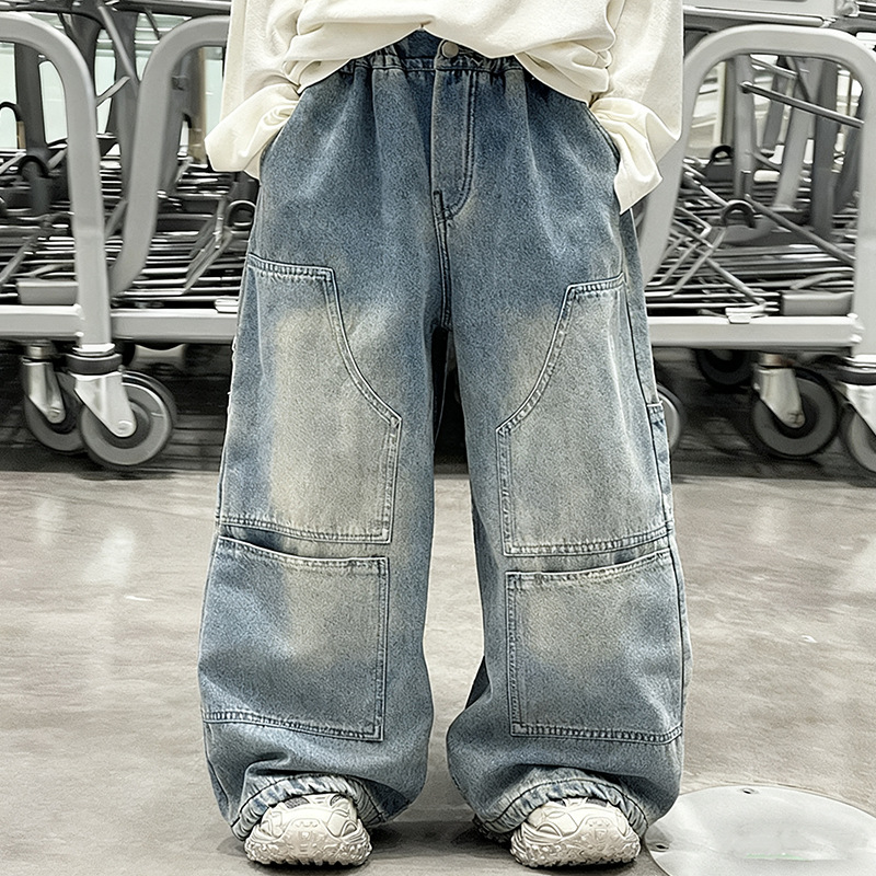 宝多童装男童一体绒牛仔裤2025冬季韩版儿童柔软加绒裤子110-180