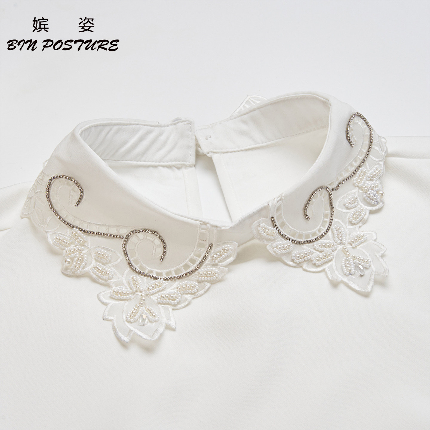 白色钉珠假领子女百搭假领衬衫领