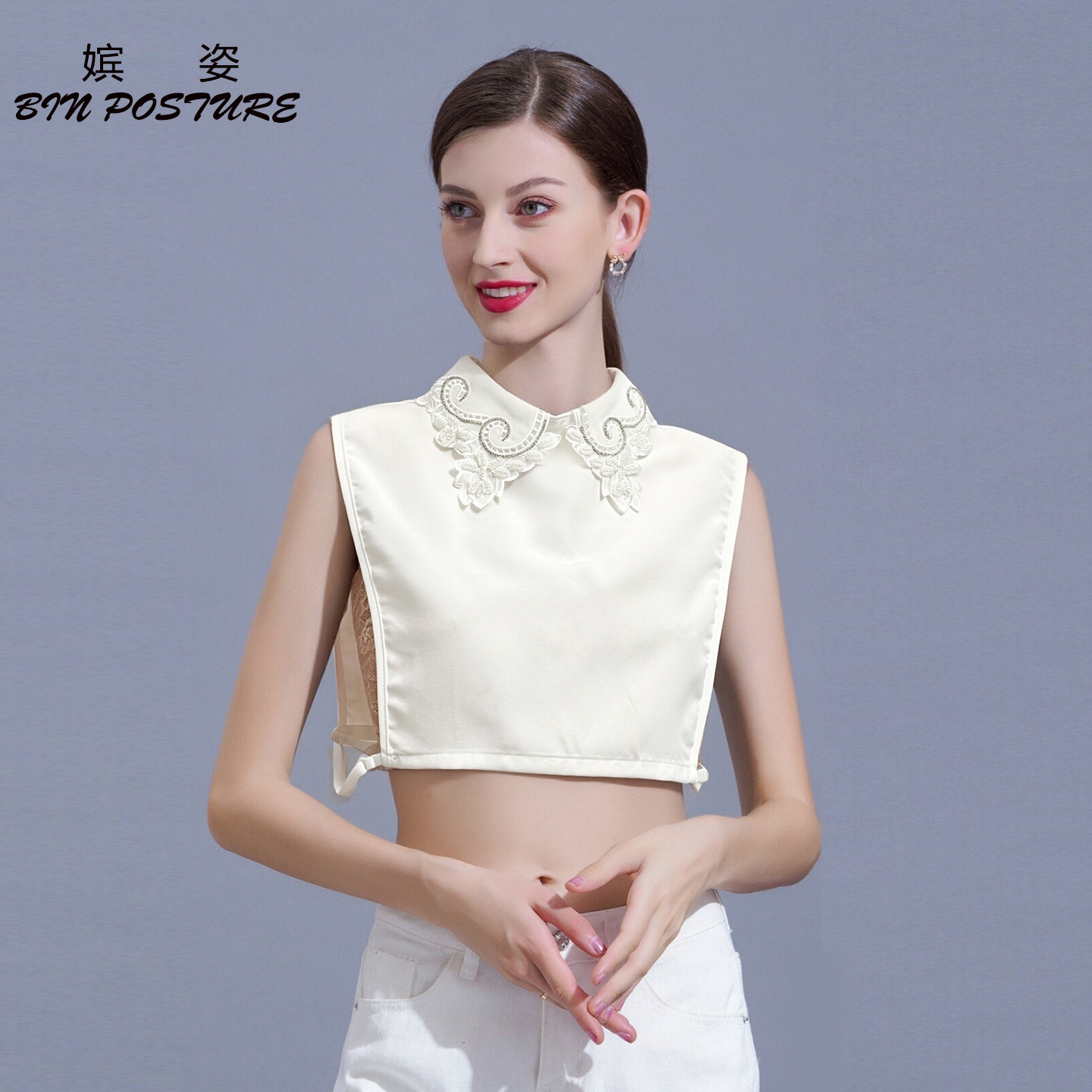 白色钉珠假领子女百搭假领配毛衣打底内搭春夏秋冬假衬衫领装饰领