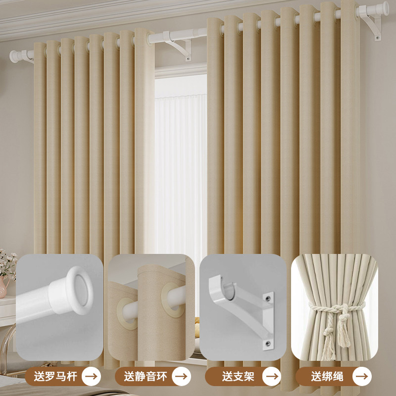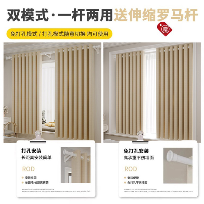 全遮光窗帘带杆一整套2025新款罗马杆安装卧室遮阳布简易客厅飘窗