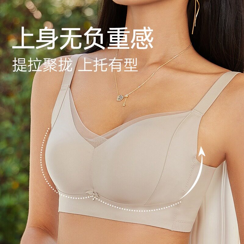 高档聚拢无痕内衣女调整型小胸罩无钢圈收副乳防下垂文胸简约薄款