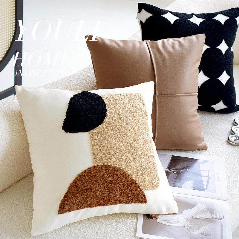客厅沙发上的抱枕奶油色床上复古风白色打结套沙发棕色腰靠枕床头