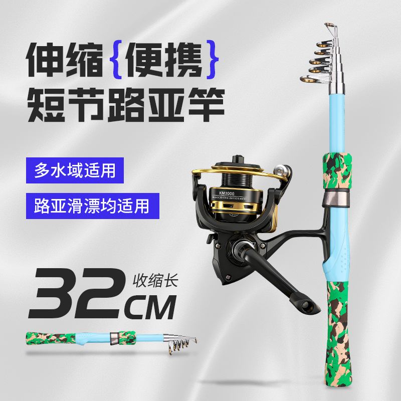 鲟圣升级路亚竿伸缩便携式纺车轮套装超轻远投碳素抛竿32CM鱼竿