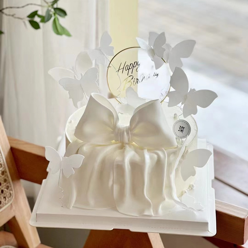 烘焙蛋糕装饰摆件仿翻糖大蝴蝶结布料白色蝴蝶结生日蛋糕插件插牌