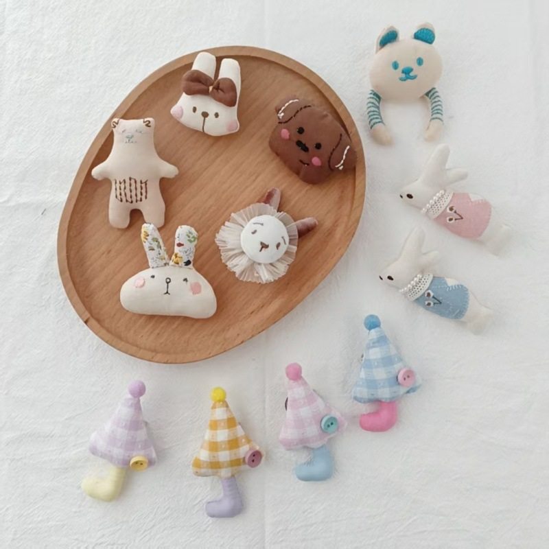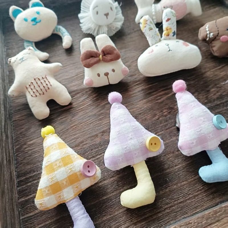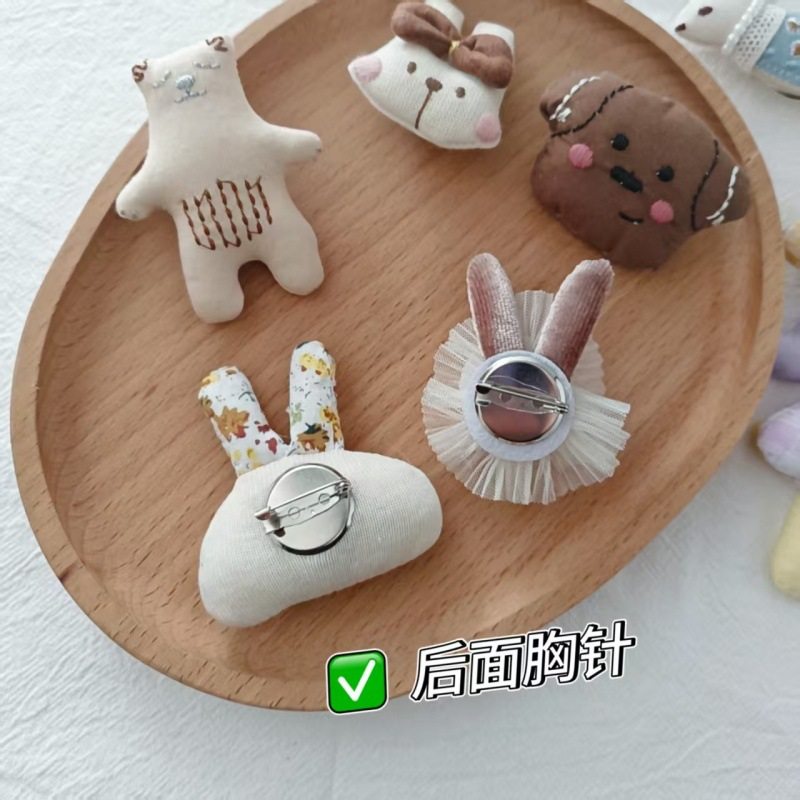 2025布艺胸针小熊雨伞棉麻布艺卡通胸针刺绣工艺服饰包包衣服配件