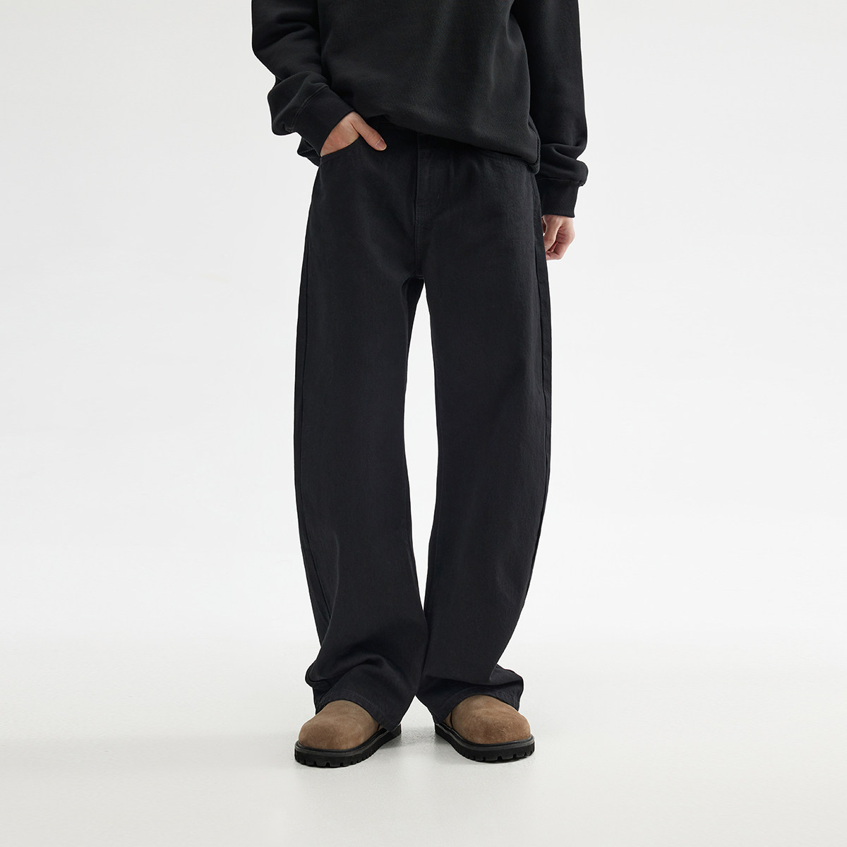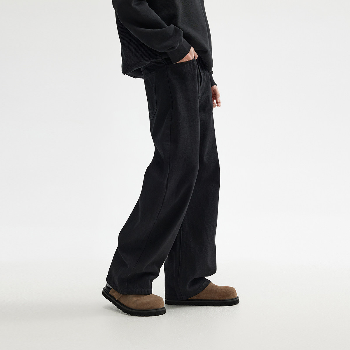 CH丨黑色弯刀牛仔裤男直筒美式潮流水洗做旧秋季宽松男士休闲裤子