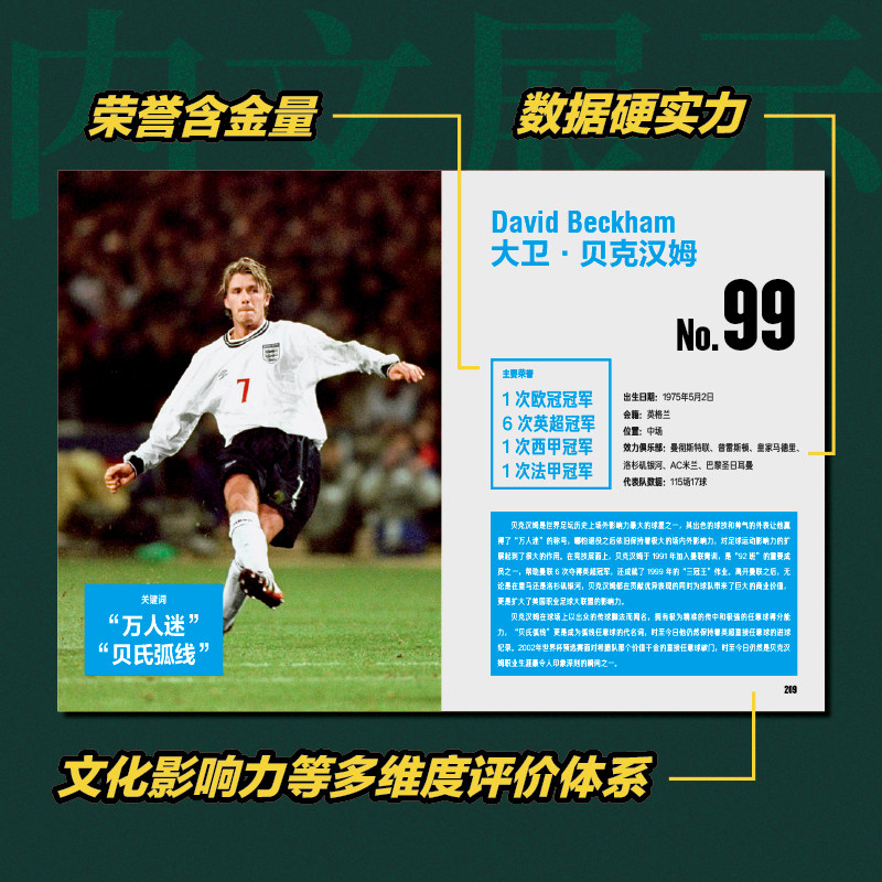 【官方正版】世界足坛百大巨星 100位球星的传奇经历 国内首部聚焦足坛巨星历史地位之书 贝利、马拉多纳、C罗、梅西