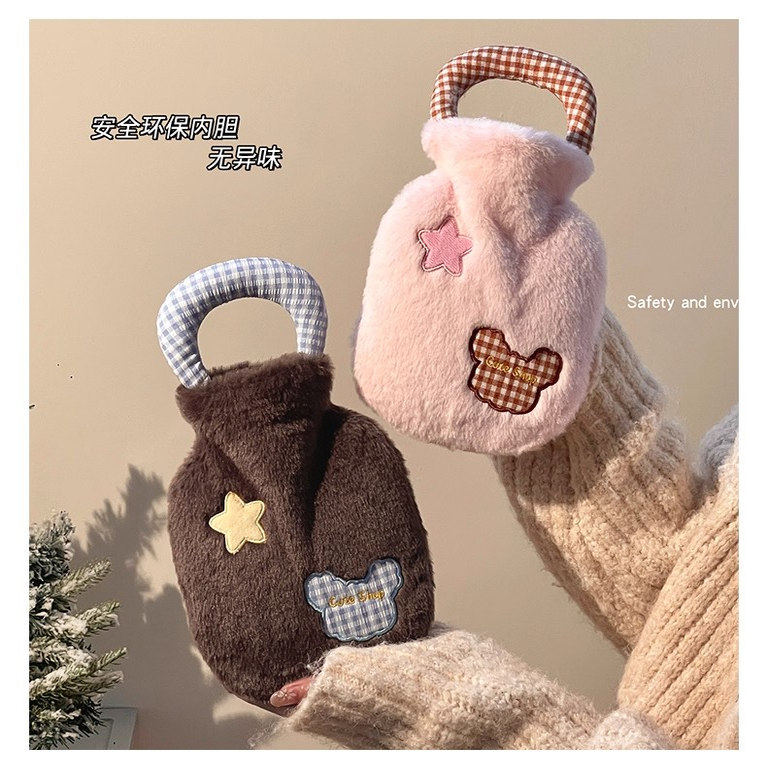 毛绒热水袋冬季暖手宝暖宫注水式宿舍学生热水袋防爆可拆卸暖宝宝