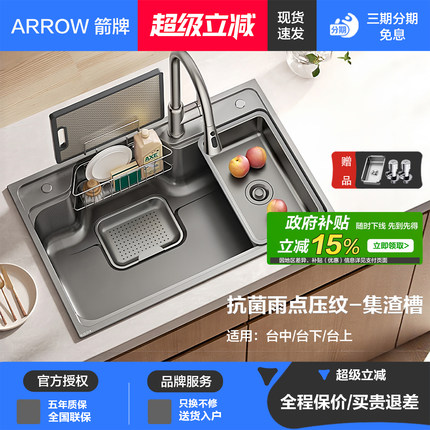 箭牌304不锈钢厨房日式聚渣水槽