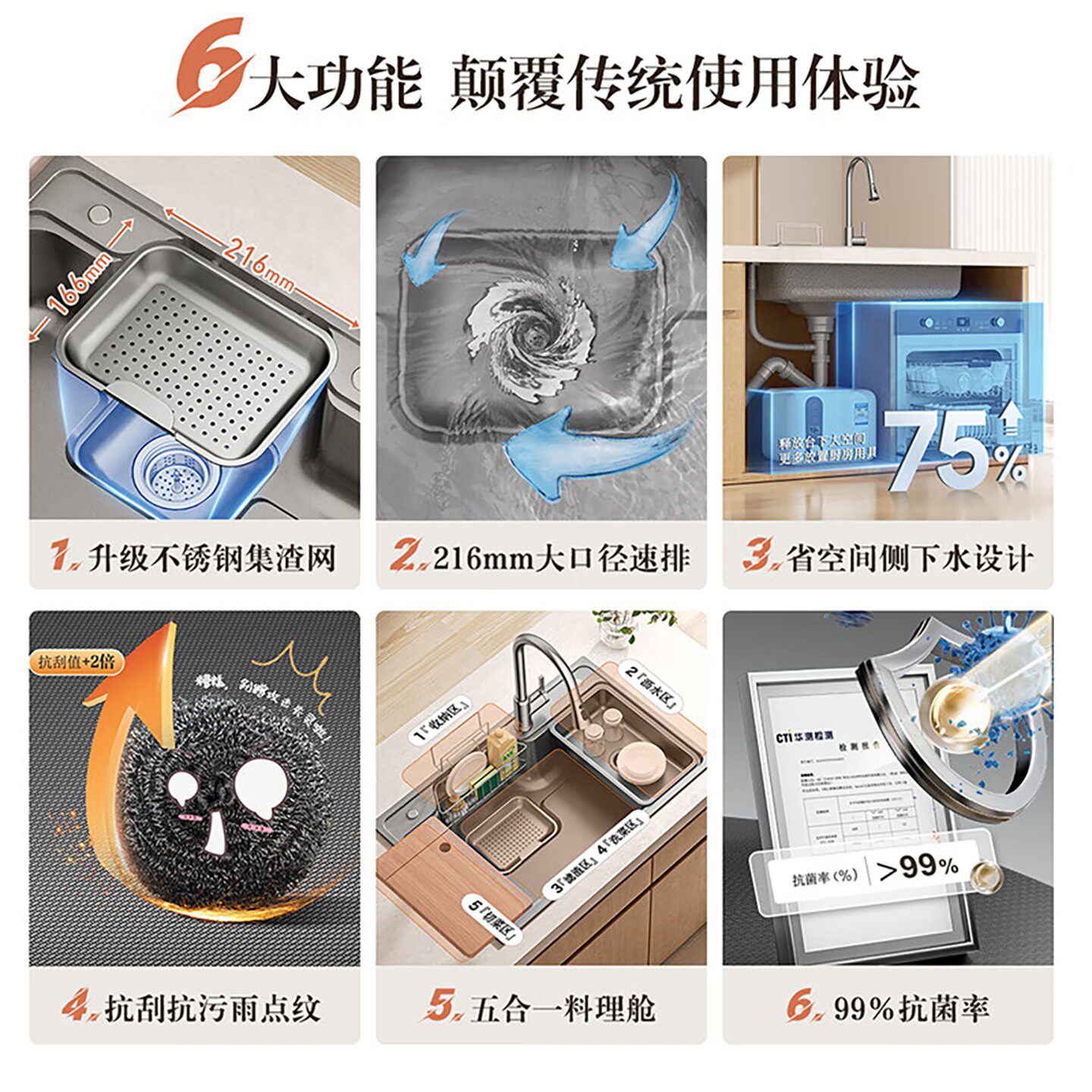 箭牌40聚渣宝水槽大单槽厨房304不锈钢洗碗池纳米 日式台下洗菜盆