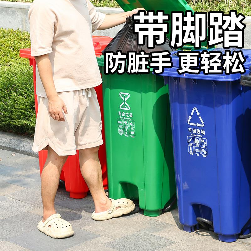 脚踩垃圾桶大号商用户外大容量带轮盖环卫分类120超大垃圾箱240升