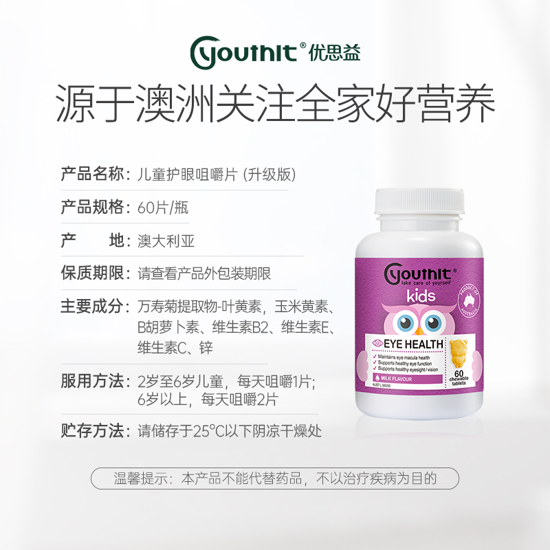 Youthit优思益澳洲儿童叶黄素专利眼睛护眼保健品进口视力小分子