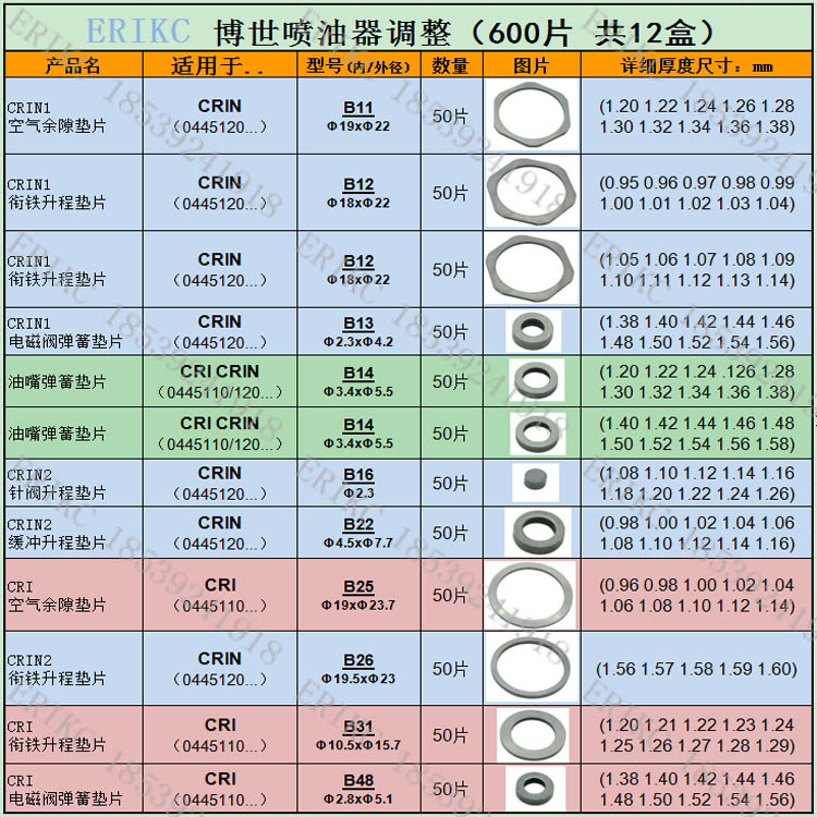 博士120喷油器调整垫片油嘴弹簧垫B14缓冲升程B22衔铁升程B26 B16