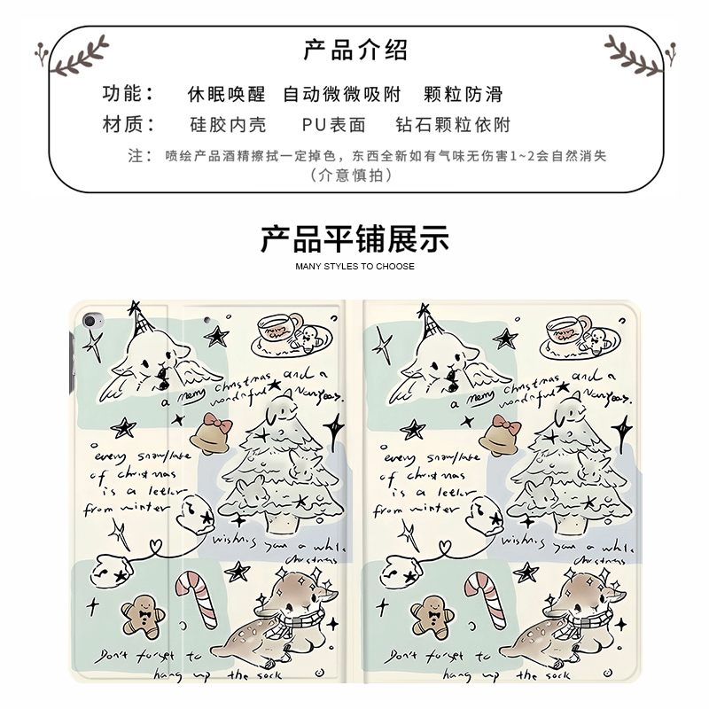 卡通圣诞小羊2021/20/19新款ipad适用air4/3/2气囊保护套10.2/9.7寸平板2018笔槽pro11三折mini4/5苹果123壳6