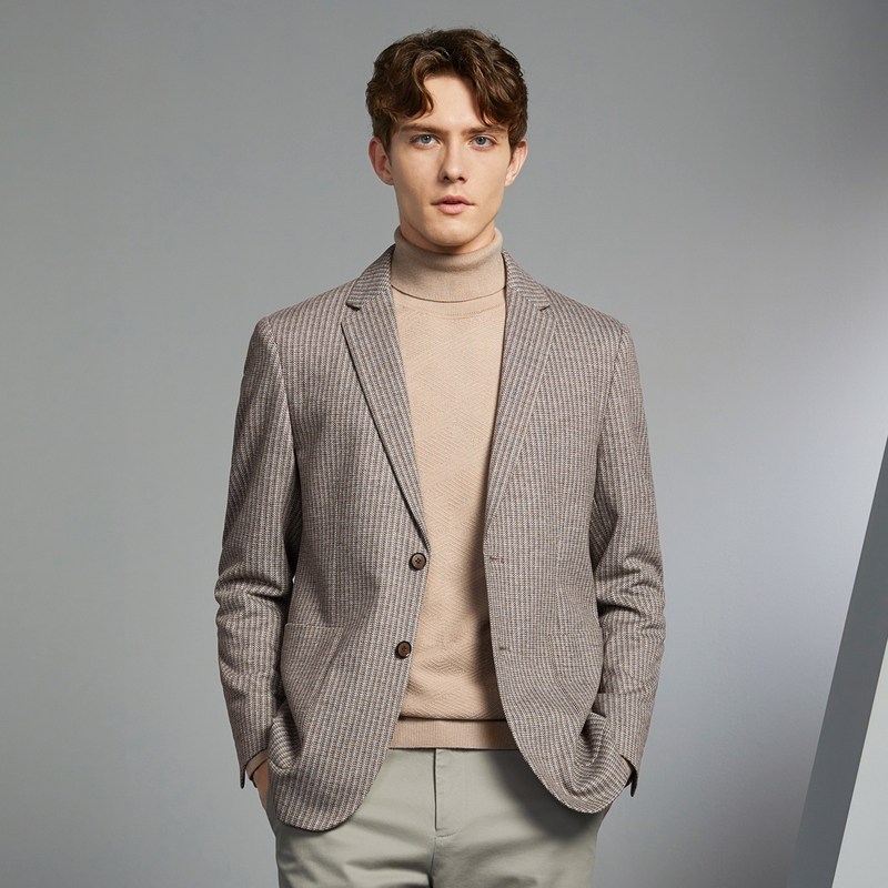 【含羊毛】柒牌男士休闲西服2025秋冬新款麦穗纹提花针织单西外套
