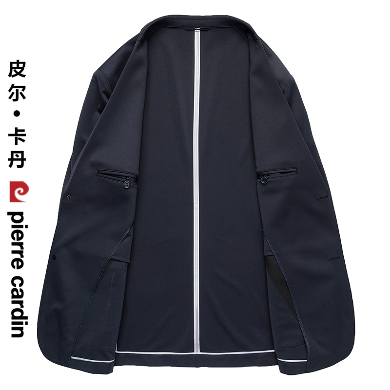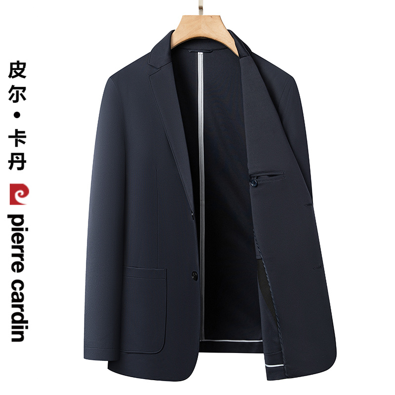 皮尔卡丹春秋季男士商务休闲纯棉修身西装中青年高档行政西服外套