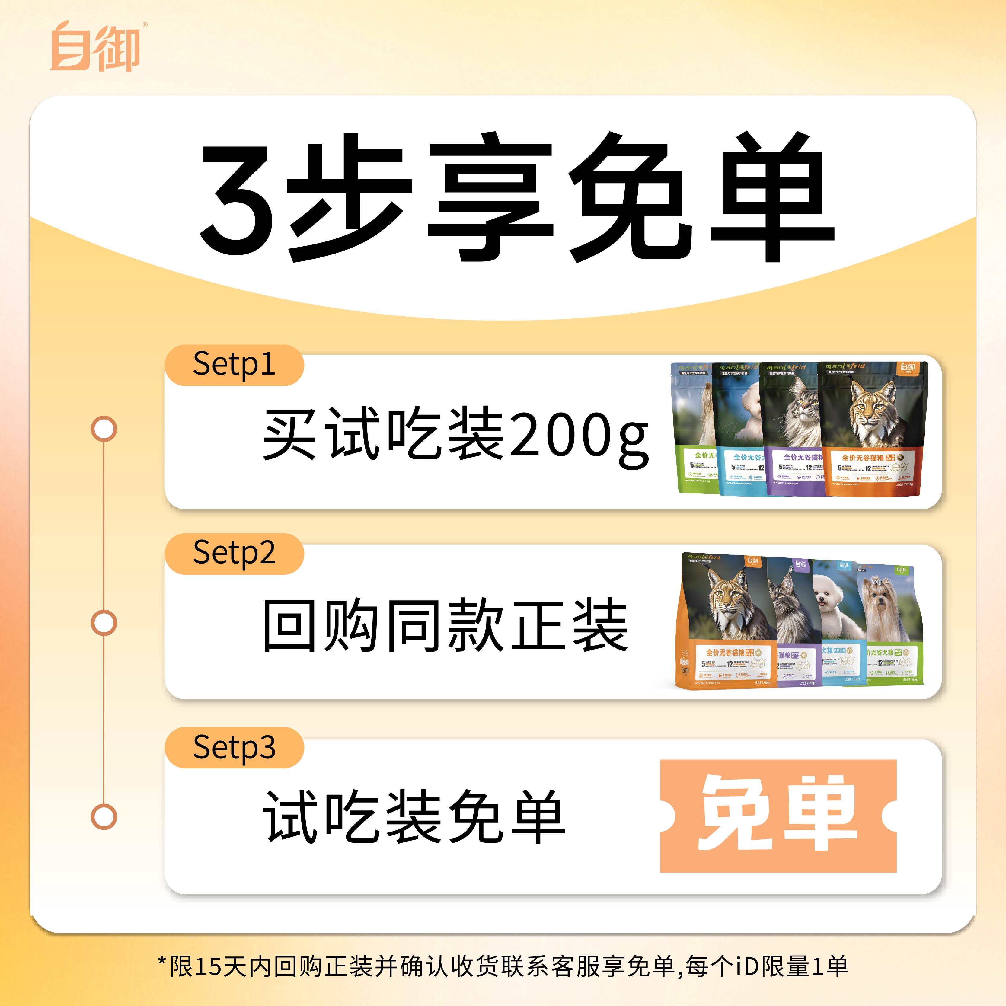 自御猫粮试吃装体验装鲜鸡肉乳鸽无谷配方全价猫粮小袋试吃包200g