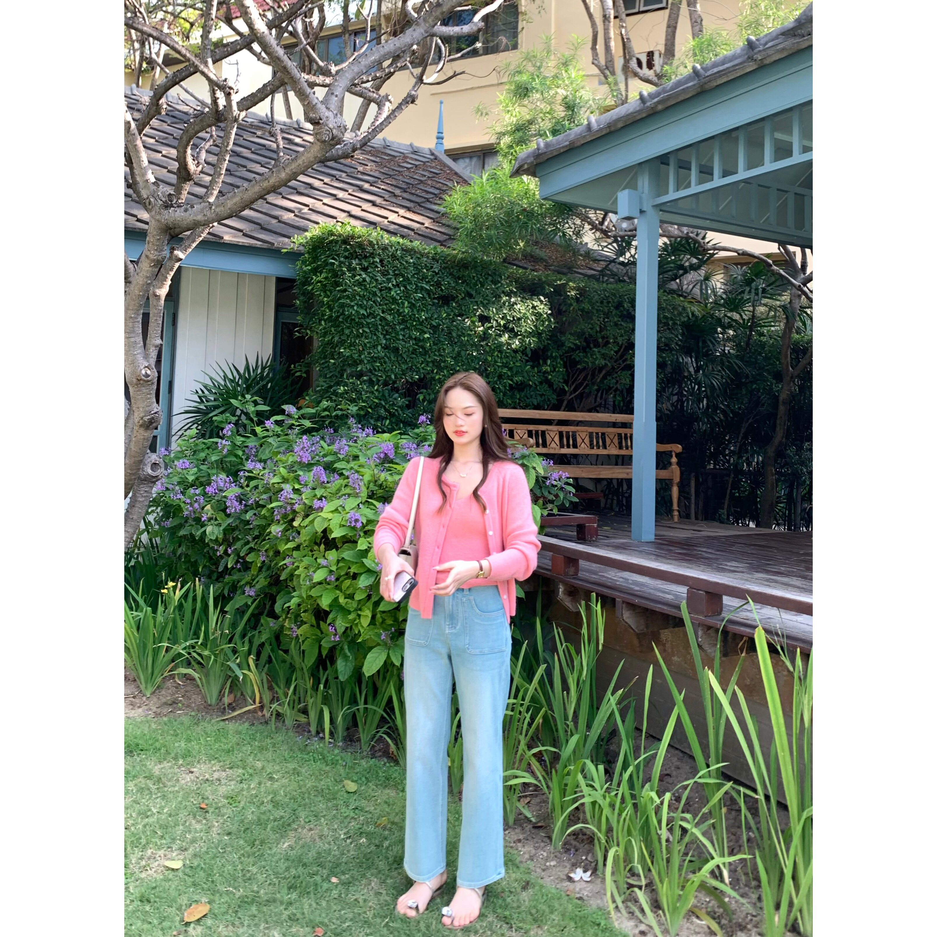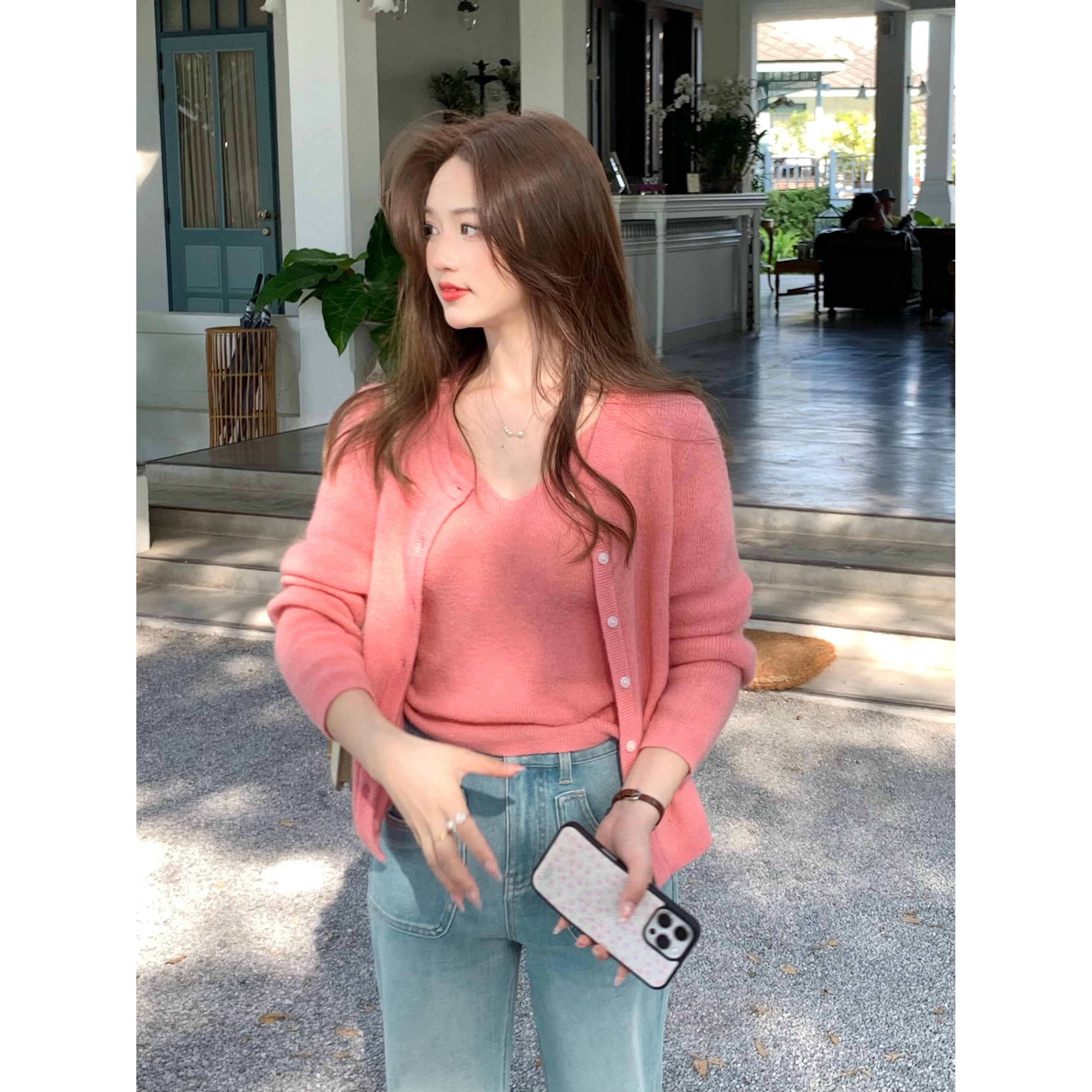 张羞羞 甜心芭乐/羊驼羊毛春季针织V领背心外套套装2026春款