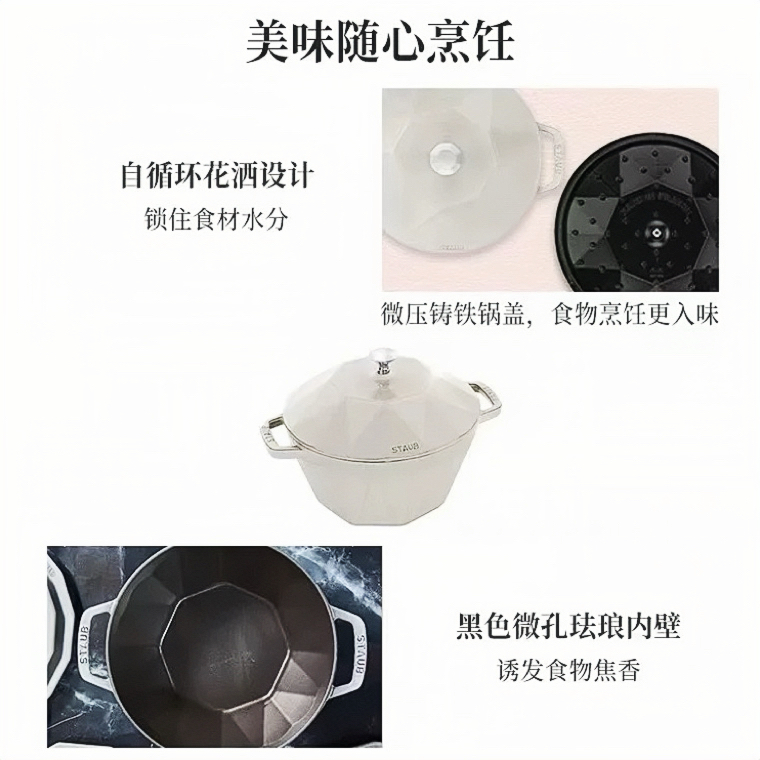 法国进口Staub珐琅铸铁锅22cm钻石锅松露白铂金灰24cm夜樱粉炖锅