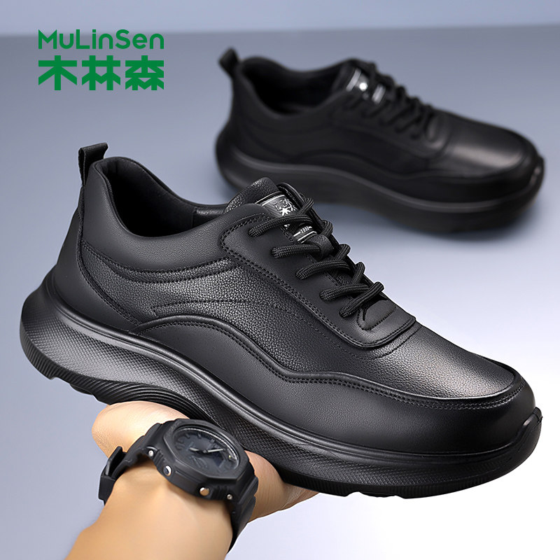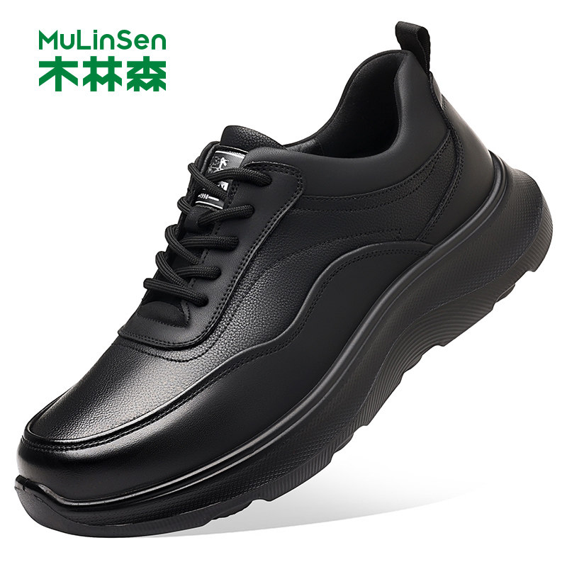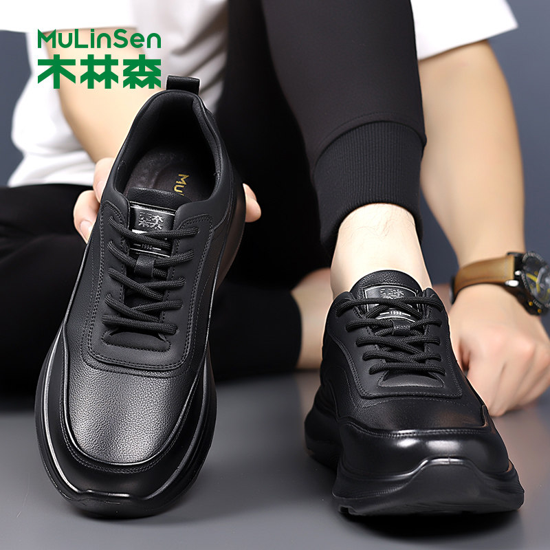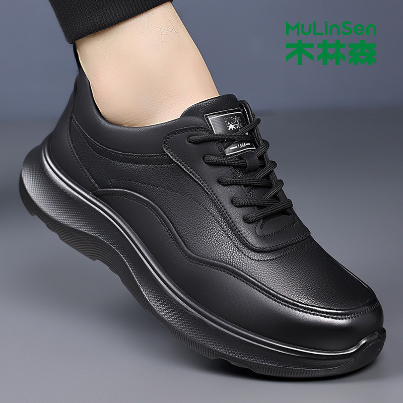 木林森男鞋2025冬季新款软底黑色时尚潮流厚底商务运动休闲皮鞋男
