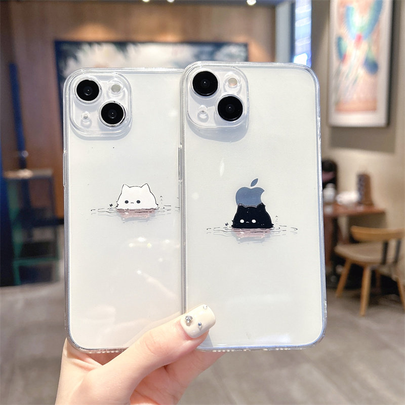 黑白猫咪手机壳适用iphone15苹果14promax新款13mini情侣12简约11可爱17/xr卡通16透明8plus硅胶7防摔6保护套