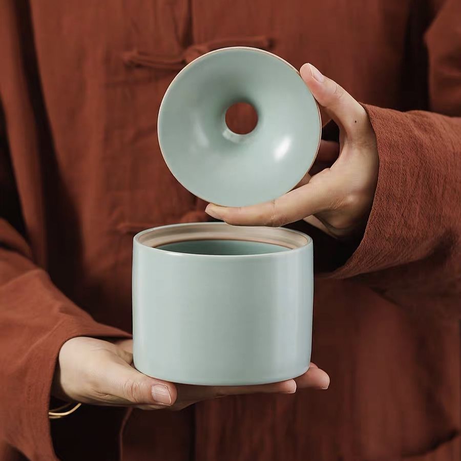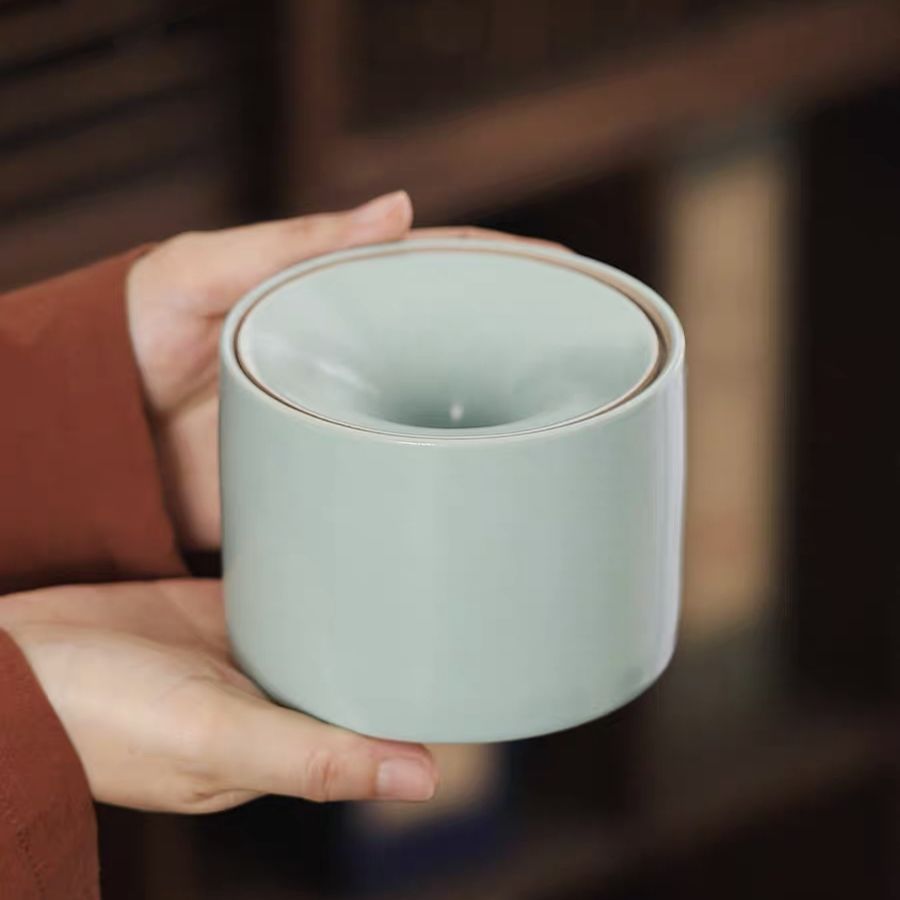 米黄汝窑陶瓷烟灰缸茶渣缸建水桌面茶渣桶家用客厅茶洗烟缸带盖