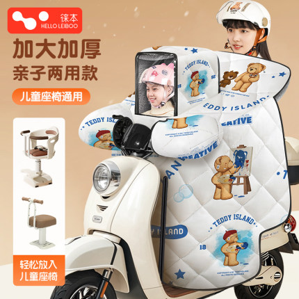 电动车挡风被带小孩冬季亲子电瓶车儿童加绒加厚防寒防水防风开叉
