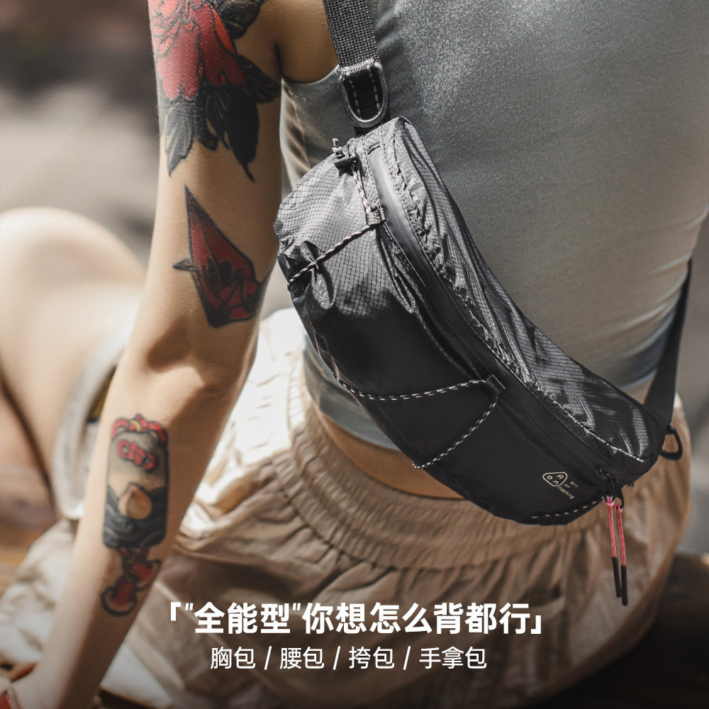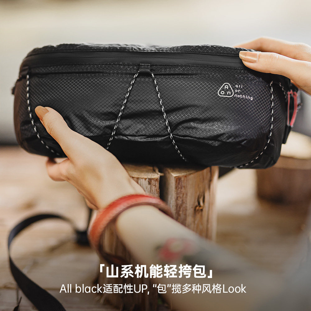 马登女士山系机能斜挎包户外手机腰包摩托车黑色胸包骑行手拿包