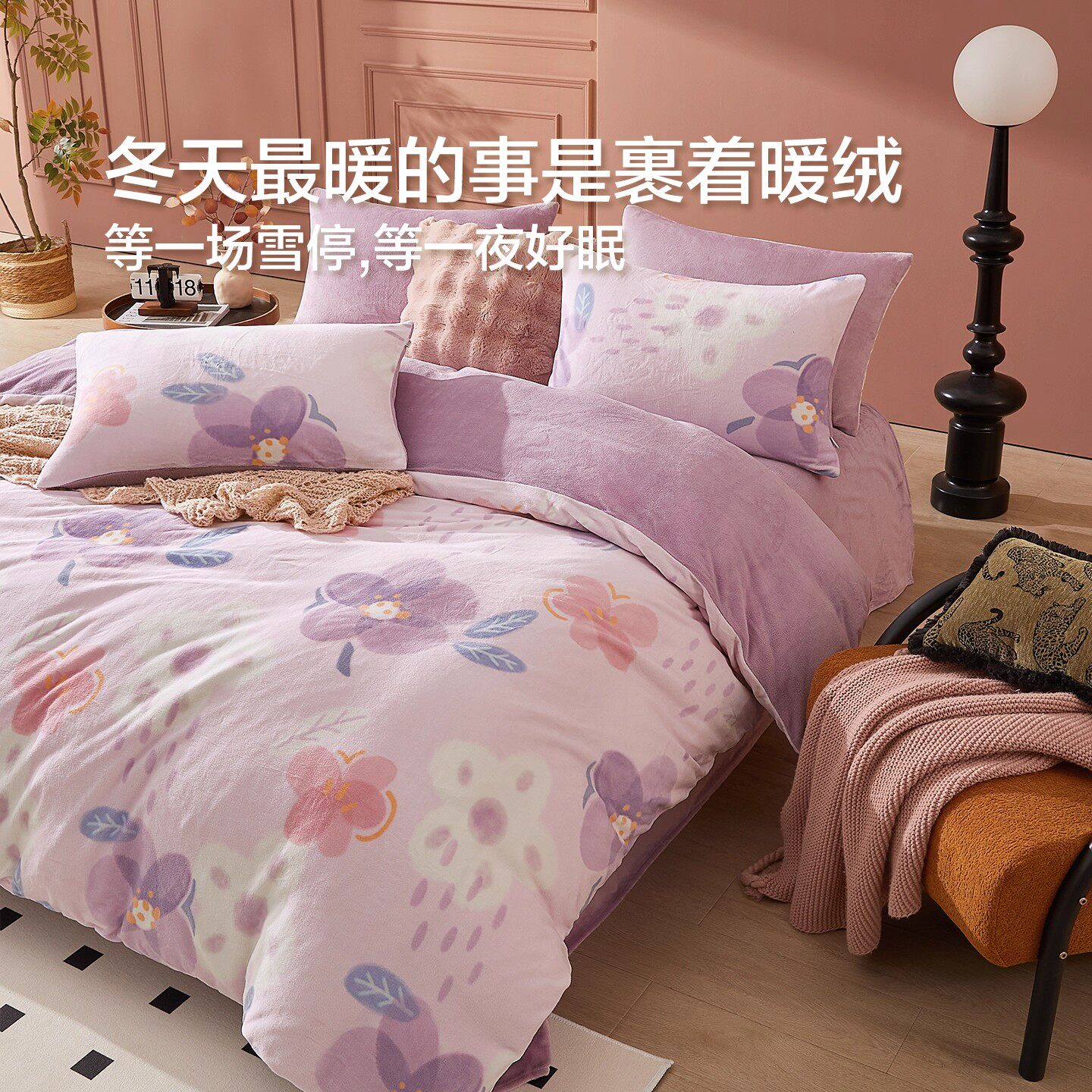 博洋三四件套珊瑚绒牛奶绒四件套