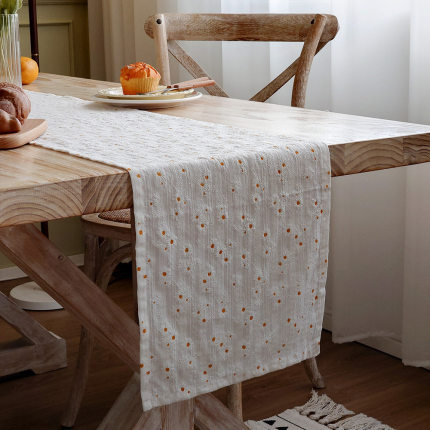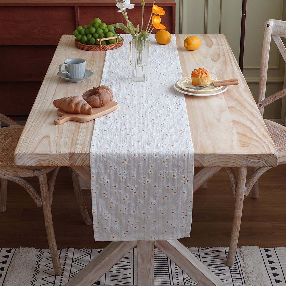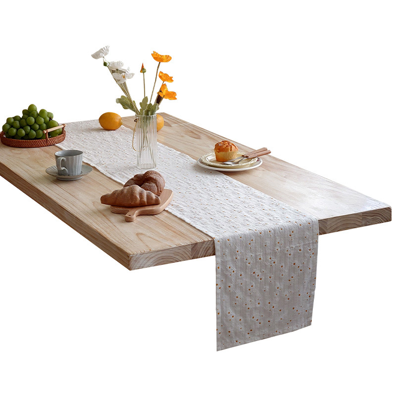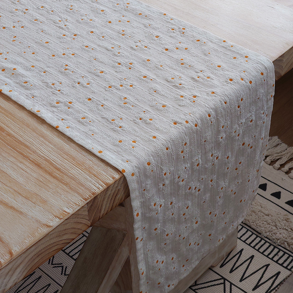 小雏菊桌旗日式棉麻风茶席茶桌巾长条餐桌布艺装饰布文艺茶几桌布