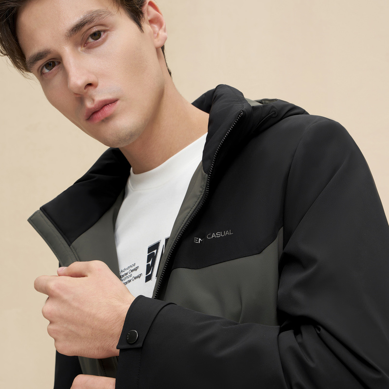 【轻户外】emz鄂尔多斯冬季蓄热保暖连帽冲锋衣鸭绒羽绒服外套男
