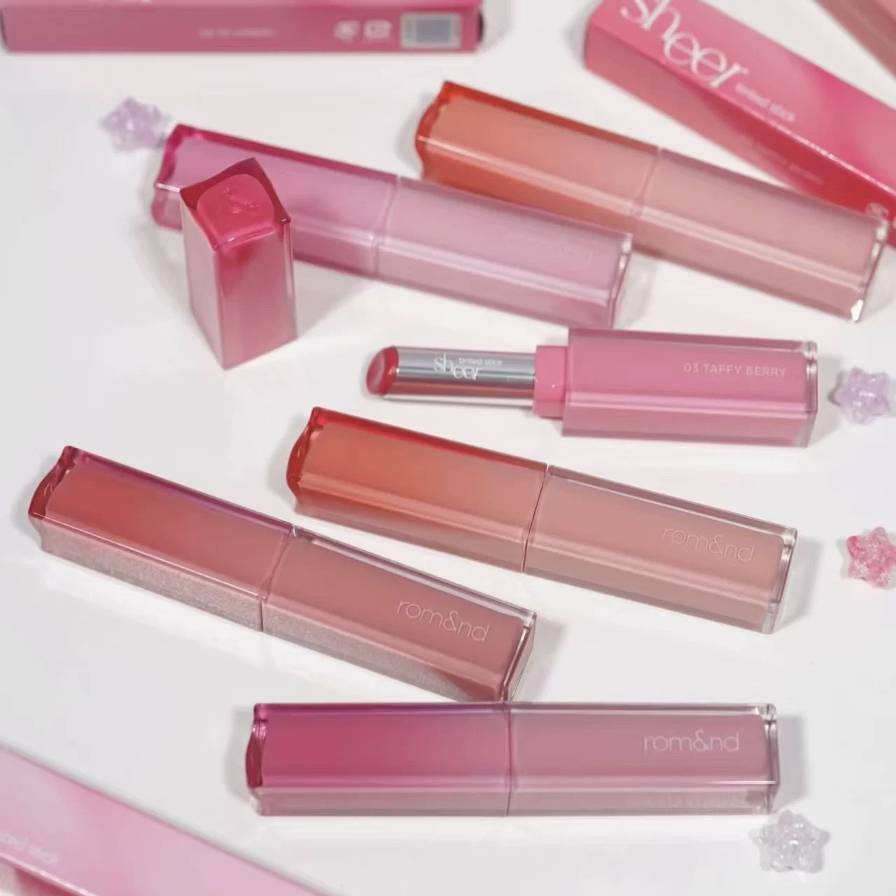 韩国Romand细管奶冻唇膏果冻布丁水光亮面滋润保湿sheer唇釉口红