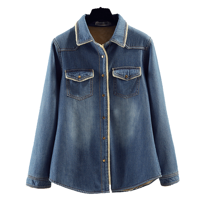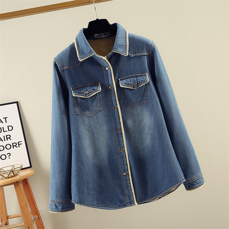 欧美秋冬修身显瘦保暖加绒牛仔衬衫女长袖休闲打底衬衣加厚外套潮
