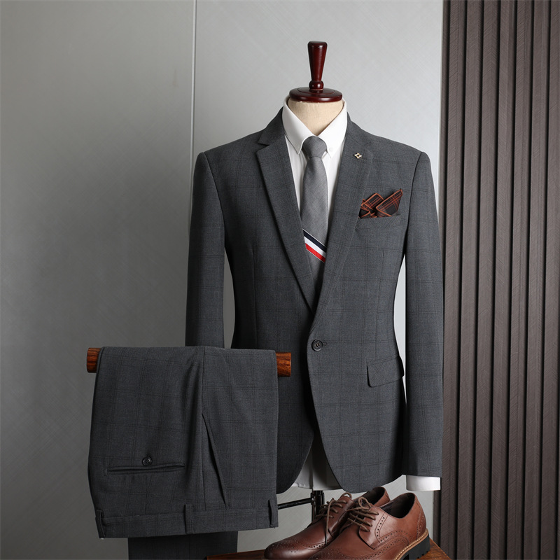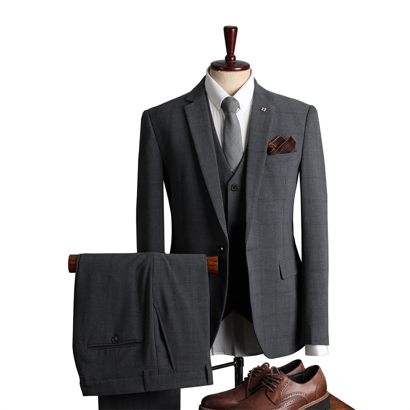 法国CherryKoko格子西装套装男士三件套修身职业装伴郎服婚礼